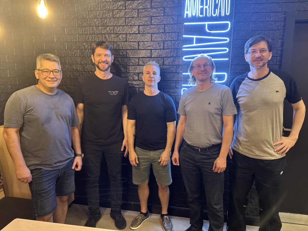 Fundadores da Continuum reunidos novamente em 2025: Henry Baggio, Rafael Dolzan, Rodrigo Dal’Asta, Alexandre Vrubel e Daniel Dolzan (Divulgação/Continuum)